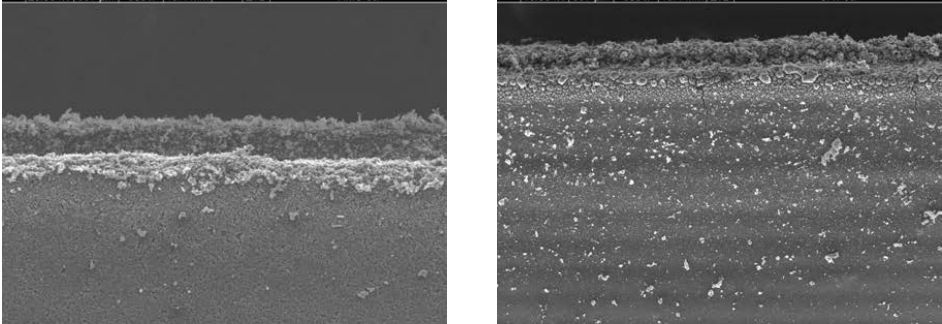 由于鋰離子電池極片是雙面涂層+中間集流體金屬層的結(jié)構,而且涂層與金屬箔材之間性質(zhì)差異大,對激光作用的響應也不相同。激光作用在負極石墨層或正極活物質(zhì)層時,由于它們具有很高的激光吸收率,導熱系數(shù)也很低,因此,涂層需要相對較低的熔化和汽化激光能量,而金屬集流體對激光具有反射作用,并且熱傳導快,因此金屬層的熔化和汽化激光能量升高。圖7是單面涂層的負極在激光作用下極片厚度方向的銅成分和溫度分布,當激光作用在石墨層時,由于材料的特性,石墨主要發(fā)生汽化,當激光侵入到金屬銅箔時,銅箔開始發(fā)生熔化,形成熔池。工藝參數(shù)不合適時,可能出現(xiàn)問題:(1)切邊涂層脫落,露出金屬箔材,如圖8左圖所示;(2)切邊周圍出現(xiàn)大量切屑異物。這些都會導致電池出現(xiàn)性能下降、安全性品質(zhì)問題,如圖8右圖所示。因此,當采用激光切割時,需要根據(jù)活物質(zhì)材料和金屬箔材的特性,優(yōu)化合適的工藝參數(shù),才能既完全切割極片,又形成良好的切邊質(zhì)量,不產(chǎn)生金屬切屑雜質(zhì)殘留。