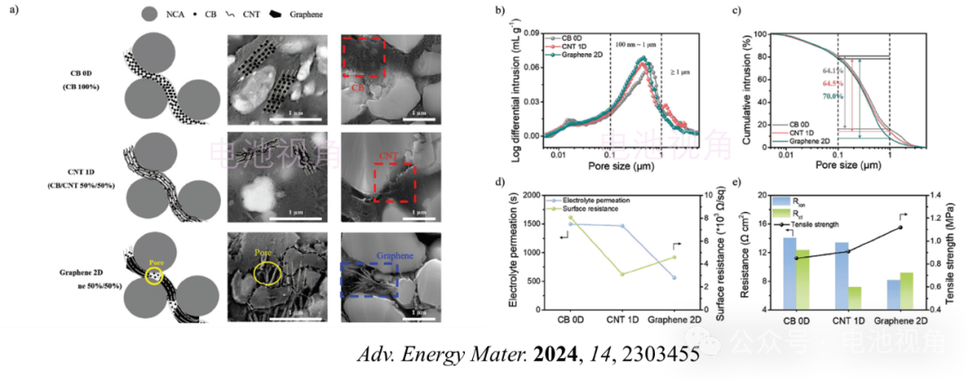 圖4.使用不同導(dǎo)電劑的極片的性質(zhì).